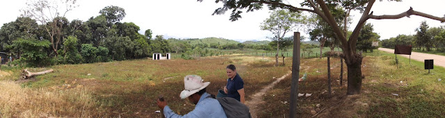 | The site of the future church. Jeannie Loving, SAMS missionary, with parishioner. |