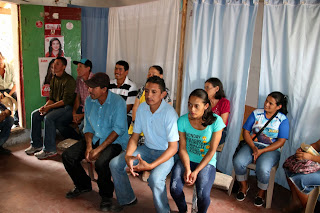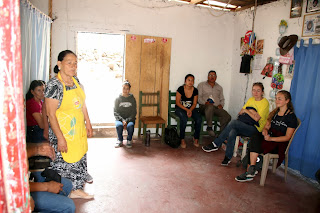immediately served us coffee with homemade bread and “rosquillas” (a savory donut.)  We sat and chatted for awhile as people began to arrive.  Finally, there were 21 of us gathered in the living room and the worship service began.  You see, that is why we were there. The food delivery was simply an add-on to the monthly visit from from Pastora Juana and the others.  As Angel explained, many of the people have never heard about Jesus.  “We are going to “soplan vida.” (We are going to blow life…in other words, bring the Word of God to the people.)