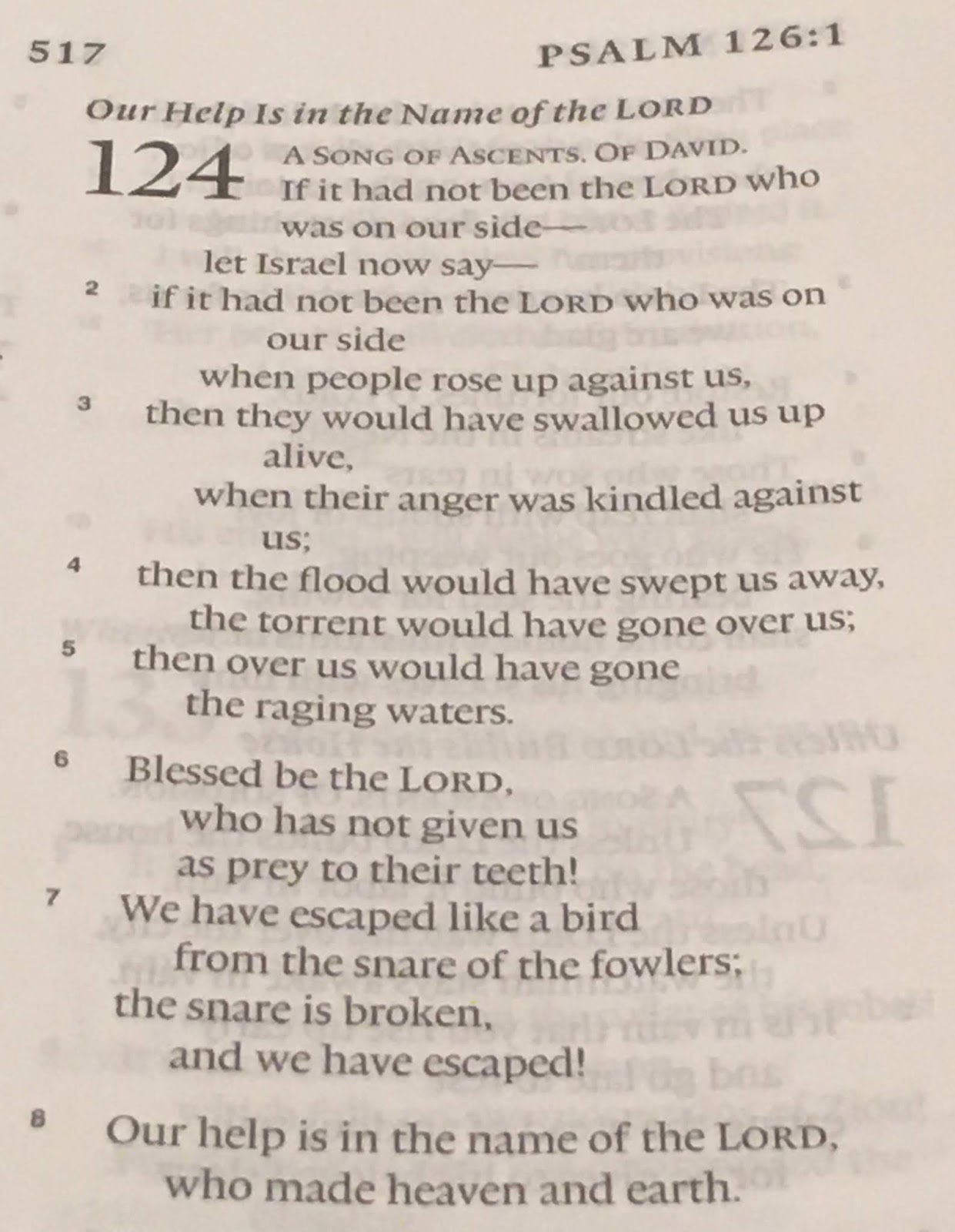 As we met together last Saturday to rehearse and prepare for the week+ ahead, I was not at my best. It had been a very rough week, and I was not feeling strong or ready for the intense week that lay ahead. So what delight I had upon reading the Word that the Lord offered me last Sunday morning before the long day’s events. As I read each verse, identifying with David in the opposition and helplessness he faced, I found hope. Each line was like receiving water in a dry land and food after a fast where each bite is savored.