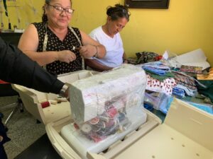 So much has changed since we lived there. We discovered that now to fill out the customs form, you have to do it with a QR code on your phone. (Cell phones are everywhere now.) We walked right past the posters so the fellow who was helping us, did it with his phone for us. When all eight suitcases and backpacks went through their x-ray machine, they pulled aside the big black one. “What is this?” “It’s a donated used sewing machine. It’s going to a workshop for poor women in the capital to learn a trade. And there’s another one in that suitcase.” And I handed him the letters from the workshops explaining that they were all donations. I was praying that he didn’t want to open the machine case itself as it was stuffed full of thread in all the spare spaces, which would have spilled all over the place. Praise God, they didn’t open any of the others and let us go without having to pay any duty on what we brought in.