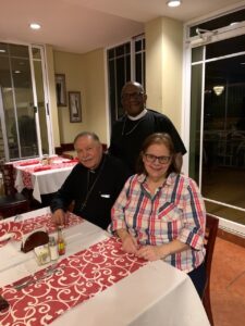 Not having gone to bed the night before because the shuttle picked us up at 3 AM, we took naps until dinner time. Bp. Lloyd Allen met us and we got caught up on what has been happening in the diocese and the plans for the workshop that John and he would be teaching with the new deacons and those who are pursuing the permanent diaconate.