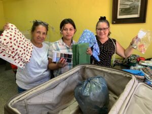 Up at 6 the next morning to head to Tegucigalpa the capital where I would see the workshops and drop off the machines and supplies. Bishop Lloyd sent me in a church van with a driver to help with the two suitcases, a sewing machine, and my backpack so that I didn’t have take a bus. About 6 hours later, after trying to follow GPS and getting vaguely lost, we arrived at the Jericho workshop and school where we dropped off the first machine and met Noah (son of former SAMS Missionary Betsy Hake) who introduced us to the women in charge of the workshop. We unpacked the very full, very heavy suitcase with the sewing machine and materials. Noah showed me around the school as well and introduced me to some children from an outreach project they have. Unfortunately, I was not able to meet with Betsy as she was away on a much-needed sabbatical. The Jericho Villa where Betsy lives and has the children’s home and another school is several hours further away out in the countryside, so I was not able to go there. The far photo has some of the items that are for sale made in their workshop.